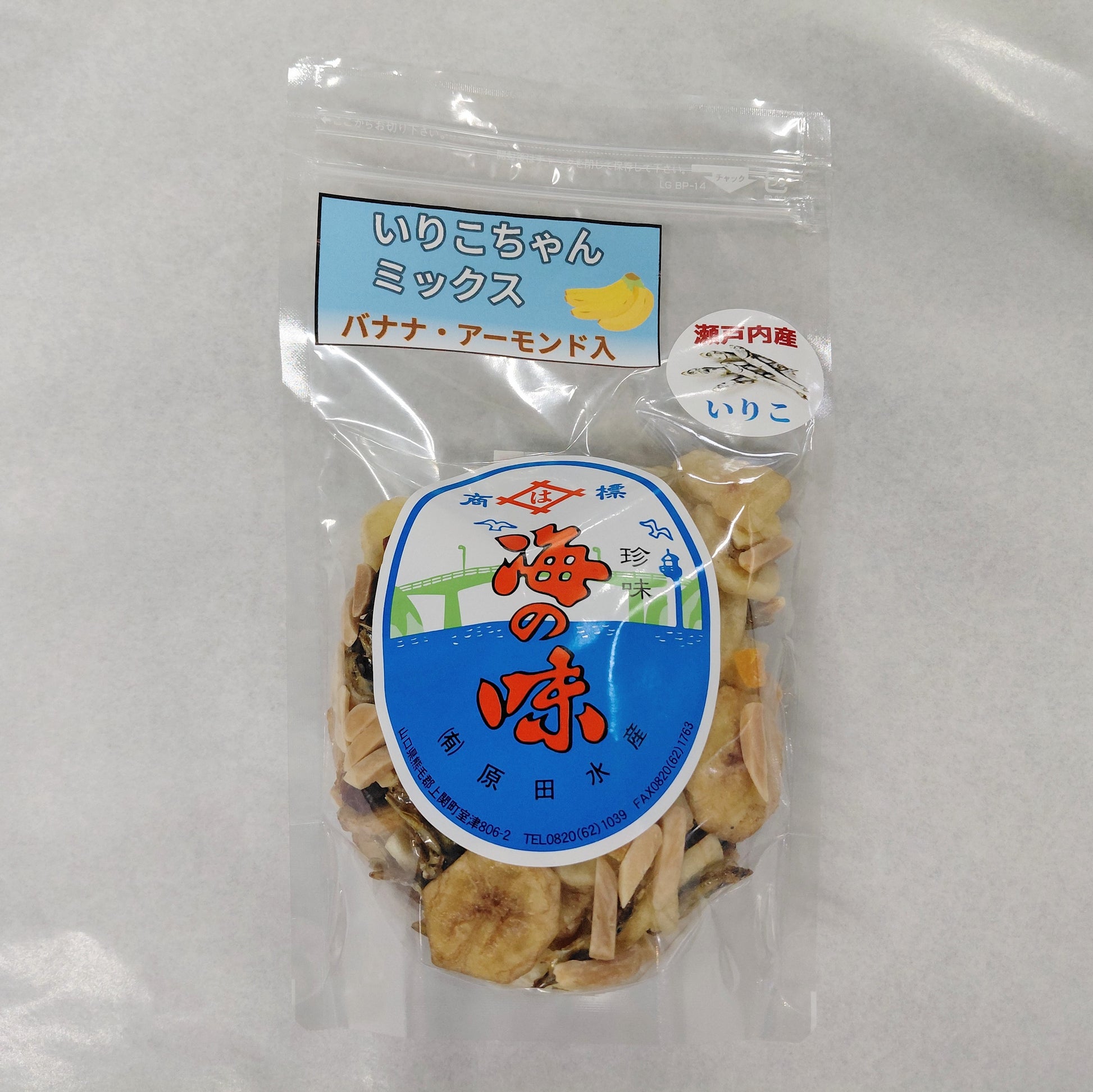 地元の「いりこ」をゴマと水あめで炒って、アーモンド・バナナチップ・ドライフルーツを混ぜ合わせてつくりました。カルシウム、食物繊維、ビタミンC・Dがたっぷりの体にいい逸品です。